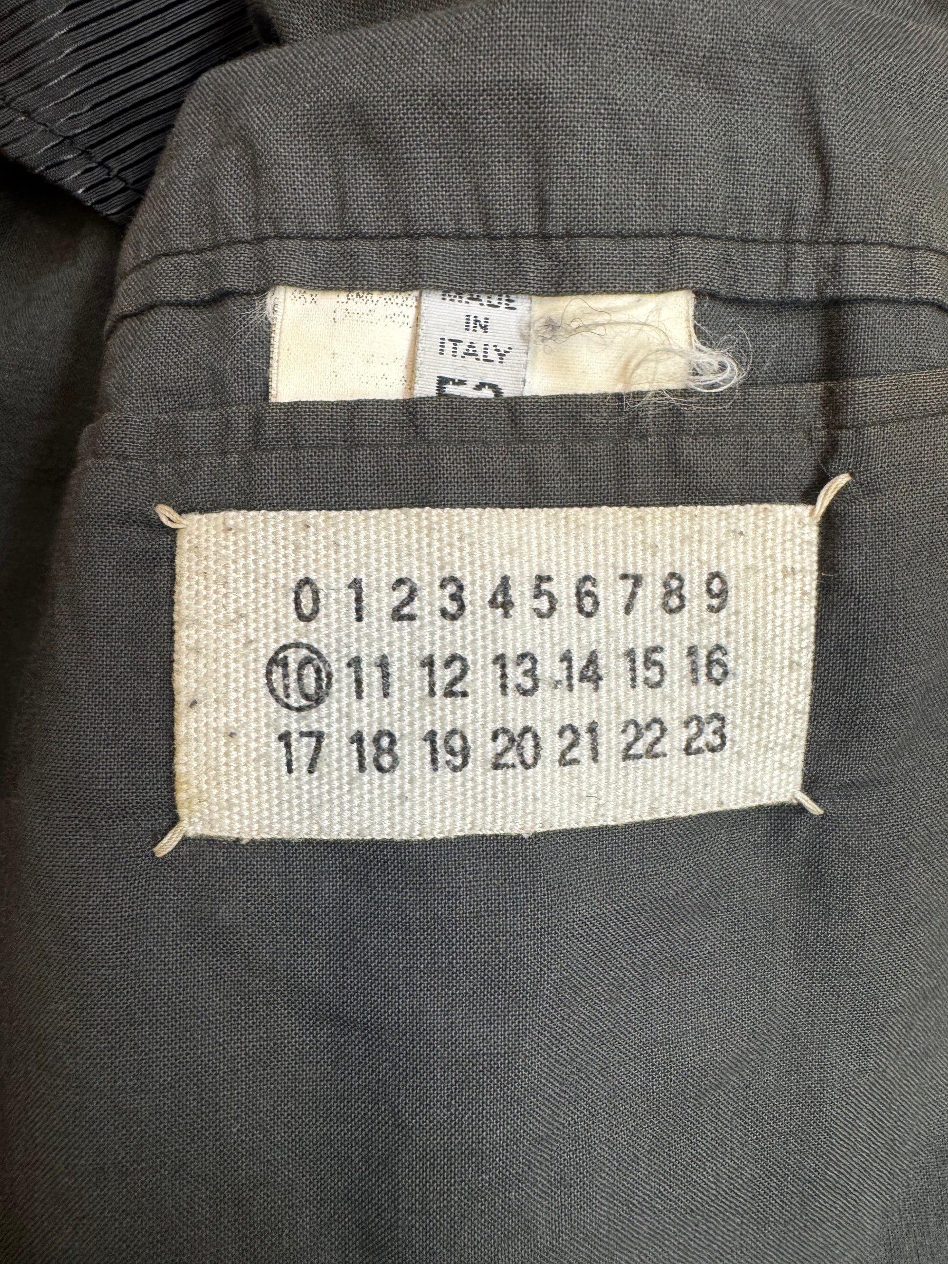 Gret wool car coat from early Margiela Menswear 10 line. Produced for the Fall Winter 1999 collection this coat is in perfect condition. Labeled size 52.